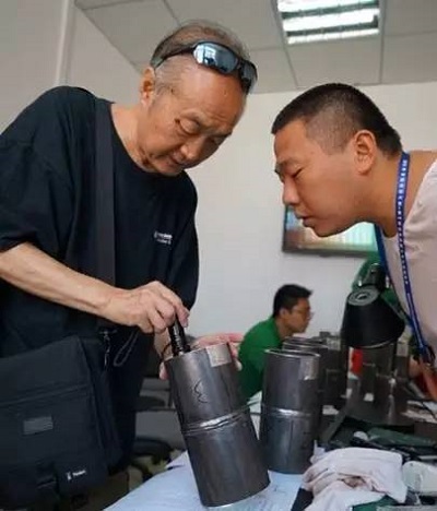 仲裁組成員張友權(左)檢查試件