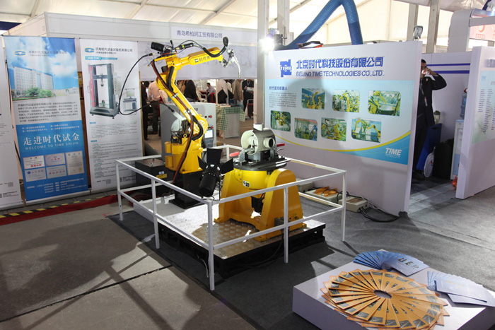 時(shí)代焊機(jī)作為職業(yè)教育領(lǐng)域的優(yōu)秀焊接設(shè)備供應(yīng)商應(yīng)邀參加了本屆展會(huì)。展會(huì)的展位都設(shè)置在組委會(huì)搭建的臨時(shí)性展棚中,時(shí)代展臺(tái)的位置在C館的中央。展會(huì)中只有三家企業(yè)與焊接專業(yè)相關(guān),時(shí)代是唯一一家專業(yè)焊接設(shè)備制造企業(yè),其余兩家都是焊接模擬培訓(xùn)儀的廠家。時(shí)代的展品以全新TD系列焊機(jī)集控系統(tǒng)、弧焊機(jī)器人設(shè)備為主。為了展示時(shí)代焊機(jī)的焊接教學(xué)系統(tǒng)解決方案,公司按真實(shí)尺寸1:1復(fù)制了焊接實(shí)操工位。工位里包括標(biāo)準(zhǔn)除塵系統(tǒng)、數(shù)字化焊接電源、焊機(jī)支撐架、多功能焊接操作架、監(jiān)控探頭、氣瓶架及氣瓶、工具柜、槍掛鉤等,與真正的教學(xué)工位一模一樣。許多從事焊接教學(xué)工作的校長、老師對(duì)時(shí)代焊接實(shí)操工位很感興趣,大家仔細(xì)觀摩并詢問了不少細(xì)節(jié)問題。大家紛紛評(píng)價(jià)時(shí)代的工位實(shí)物展示全面細(xì)致,令人耳目一新。工位外四套時(shí)代焊機(jī)聯(lián)網(wǎng)組成的集控系統(tǒng)同樣吸引了大家的目光,老師們紛紛詢問該系統(tǒng)在實(shí)際教學(xué)和生產(chǎn)中的實(shí)際意義和用途,對(duì)時(shí)代新型焊機(jī)的外觀也大加贊賞。最吸引觀眾目光的還是時(shí)代弧焊機(jī)器人系統(tǒng),本次展示包括機(jī)器人本體和小型變位機(jī)一套。機(jī)器人配合變位機(jī)焊接零件的過程,動(dòng)作靈活準(zhǔn)確。為了強(qiáng)化展出效果,展臺(tái)上布置了兩盞大功率的射燈將機(jī)器人照亮,耀眼的燈光將時(shí)代機(jī)器人高精度、高智能的風(fēng)范勾畫得淋漓盡致。老師們對(duì)機(jī)器人的價(jià)格十分關(guān)心、同時(shí)還咨詢了不少教學(xué)系統(tǒng)編程問題。