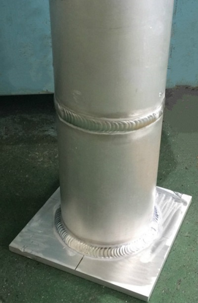 對于第三模塊中不銹鋼結構件的焊接,個人觀點是其焊接難點要更甚于鋁合金的焊接。眾所周知不銹鋼在高溫狀態下非常容易氧化,而且變形量也較大。這次的不銹鋼結構件組對完畢后,所有焊縫根據要求都不允許留間隙、開坡口焊接,并在背部充氣的情況下實現單面焊雙面成型(如圖7),它的焊接難點之一首先是為防止變形,如何選擇好組對之后的焊接順序,其次是焊接過程中如何能夠保證一次焊接背部成型和表面焊縫成型不氧化,乍聽起來好像這兩點有些矛盾,首先要想保證在不留間隙的情況向背面焊透,就要使熔池的溫度充分達到,而熔池溫度一旦過高焊縫表面就很容易氧化發黑,本屆比賽各路選手也是各顯其能,對于氬弧焊噴嘴的使用從6號嘴到10號甚至更大都有使用。其實從理論上來講,要想使氬弧焊接不銹鋼表面成型好,顏色好,主要就是氣體的保護效果,如果比賽允許使用氬氣保護拖罩進行三重保護,即熱影響區也保護起來,那么焊縫達到銀白色的金屬光澤也是有可能的,但這次只允許兩重保護(即內充氣和氬弧槍本身氣體),那么對于焊縫的正表面只能采取大口徑噴嘴進行,才能擴大保護范圍,如果條件允許,也可以采用噴嘴內裝有濾網的大口徑噴嘴進行焊接,這樣的氣體保護會更均勻。但前提是采用大噴嘴口徑的焊槍對焊接過程中選手對熔池觀察的視線會有所影響,也要逐漸適應。這次大賽對于大噴嘴的使用只有少數單位想到了這一點。隨著本次大賽的結束,我想以后對于不銹鋼焊接的氧化問題,會有更多的單位熟悉、掌握,甚至想出更好的辦法來解決不銹鋼焊接氧化的問題。