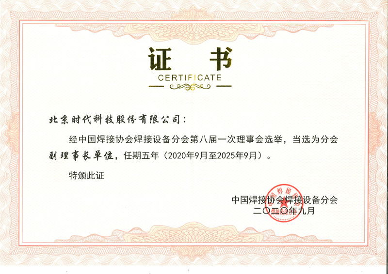 | 2020-09 | 中國焊接協會焊接設備分會副理事長單位 | 中國焊接協會 |