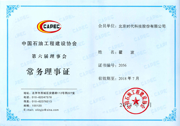 | 2014-08 | 中國石油工程建設協會常務理事證 | 中國石油工程建設協會 |
