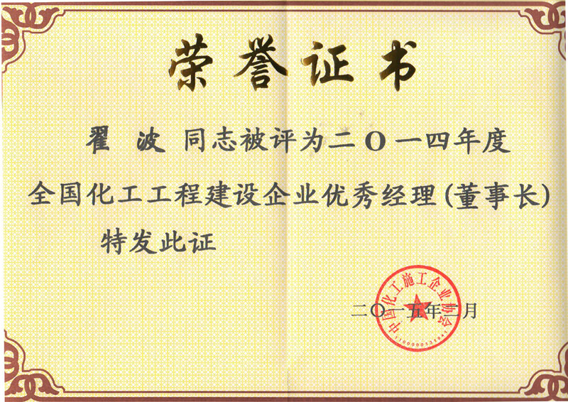 | 2015-02 | 2014年度全國化工工程建設單位 優秀經理(董事長) | 中國化工施工企業協會 |