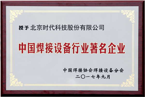 | 2017-09 | 中國焊接設備行業著名企業 | 中國焊接協會焊接設備分會 |